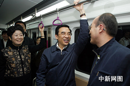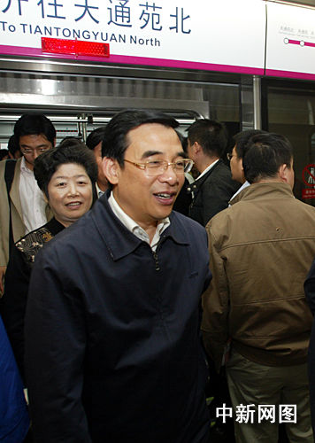 10月7日,北京地铁五号线开通试运营,北京市委副书记王安顺与市民共同试乘这条贯穿京城南北的交通大动脉。杨可佳 于立霄 摄