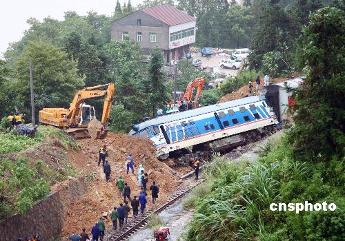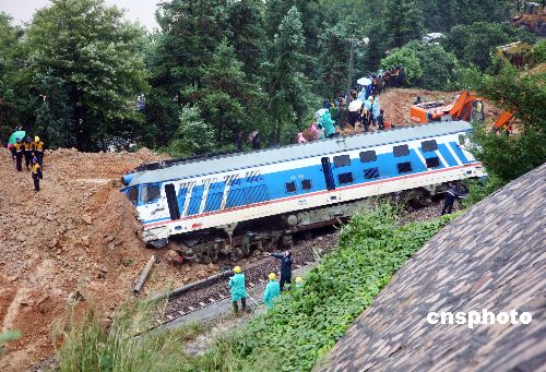 图:受山体滑坡影响 金温铁路一列车出轨(2)