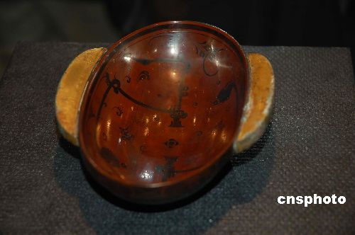 “光武帝刘秀御用漆器”--彩绘云气纹贴金漆耳杯。