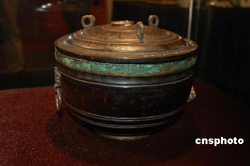 “光武帝刘秀御用漆器”--彩绘错金银瑞兽纹漆簋。