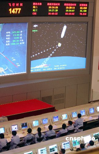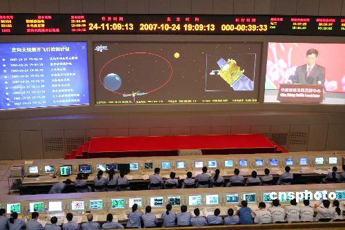 图:北京航天飞控中心监控“嫦娥一号”发射(2)