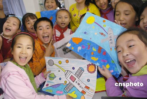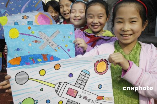 10月25日,安徽省芜湖市范罗山小学开展 “巧手绘‘嫦娥’圆我飞天梦”活动,科技辅导员用绘画、模型、报纸等形式向小学生讲解“嫦娥一号”飞天探月知识,圆小学生飞天梦。中新社发 老春 摄