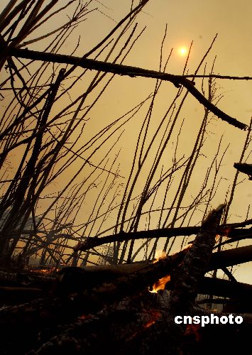 十月二十五日,美国南加州肆虐五天的山火集中在五个地区,当地居民和许多豪宅依然受到烟火威胁,目前已有一百万灾民流离失所。中新社发 贾国荣 摄