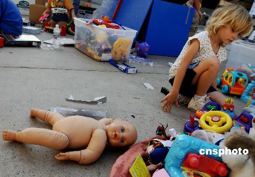 图为一位小灾民在圣地牙哥高通体育馆临时避难场设立的儿童乐园里。
