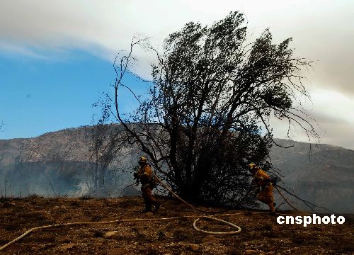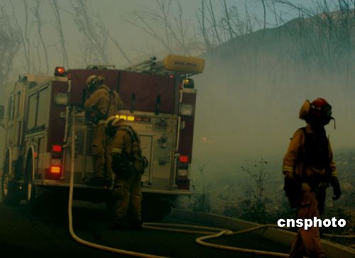 十月二十六日,美国加州大火第六天,消防员基本扑灭洛杉矶十四处山火,准备转战依然燃烧的圣地牙哥和橙县,那里灾情依然严峻。中新社发 贾国荣 摄