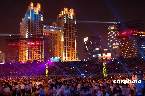 十月二十八日,第四届中国—东盟博览会开幕,当晚博览会开幕式晚会暨南宁国际民歌艺术节在民歌广场开幕,民歌广场和周围高楼灯光璀璨,夜景十分迷人。中新社发 刘万强 摄