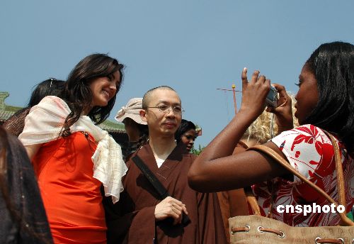 十一月五日,二十六名参加第五十七届世界小姐总决赛的佳丽来到三亚南山文化旅游区拍摄外景。中新社发 尹海明 摄
