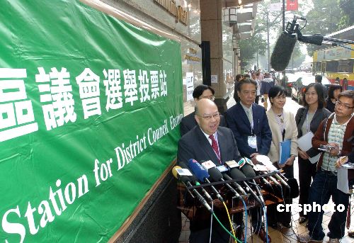 香港区议会选举举行 曾荫权吁市民踊跃投票(图)