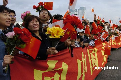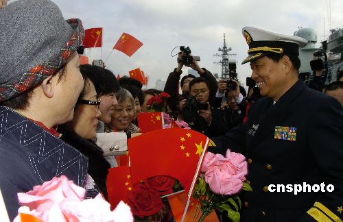 12月1日上午“深圳”号结束对日本的友好访问返航归国时,六百余名在日华人华侨留学生及驻日使馆人员赶往码头送行。中新社发 朱沿华 摄