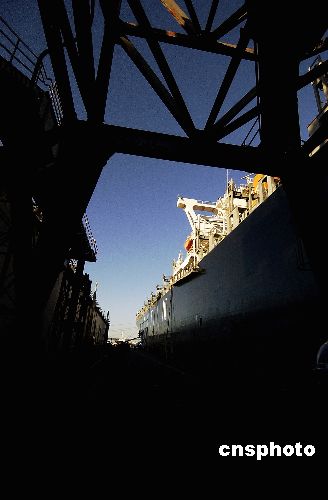 图为中远釜山号在旧金山市修复的资料照片。