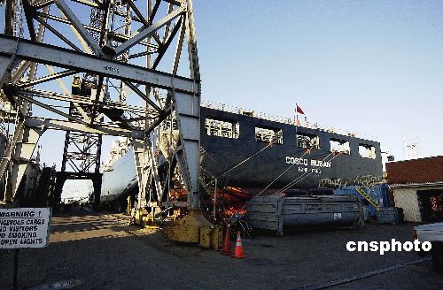 图:中远釜山号离美启程返回韩国(2)