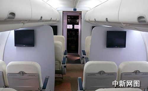 中国首架自主知识产权的喷气支线客机ARJ21舱内布局。