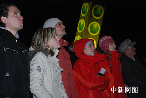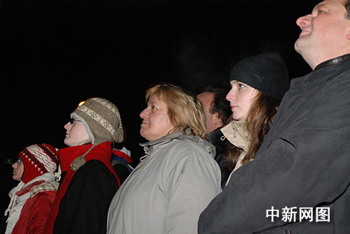 捷克民众在米库洛夫申根庆典上观看焰火时神情肃穆。