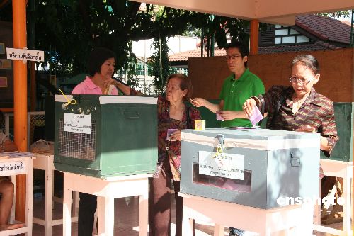 泰国新一届国会下议院选举二十三日上午八时开始在全国一百五十七个选区举行,八万多个投票站同时向选民开放投票。这是泰国历史上第二十五次全国大选,也是泰国去年发生政变后首次举行的新大选投票。据泰国选举委员会介绍,大选投票将持续到十五时结束,共有约四十个政党的五千多名候选人参加本次大选,角逐四百八十个下议院席位。除去上周已经参加提前投票的约三百万名选民以外,当天共有合格选民四千二百多万,有十个国家共向本次大选派出九十一名国际观察员。本次大选预算约为二十亿泰铢。中新社发 顾时宏 摄