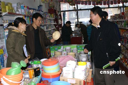 十二月二十六日,全国产品质量和食品安全专项整治行动检查验收小组在超市检查。全国产品质量和食品安全专项整治行动检查验收小组于本月二十四来到河南对河南省产品质量和食品安全专项整治行动进行检查验收。中新社发 史宝银 摄