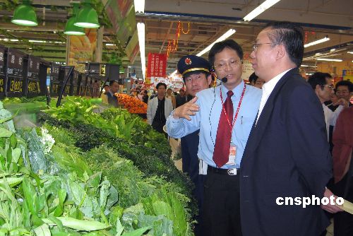 十二月二十七日至二十九日,由国务院新闻办副主任王国庆带队的专项整治检查小组对海南进行验收,图为他们在检查超市蔬菜。为期四个月的中国产品质量和食品安全专项整治行动近日结束。中新社发 彭小云 摄