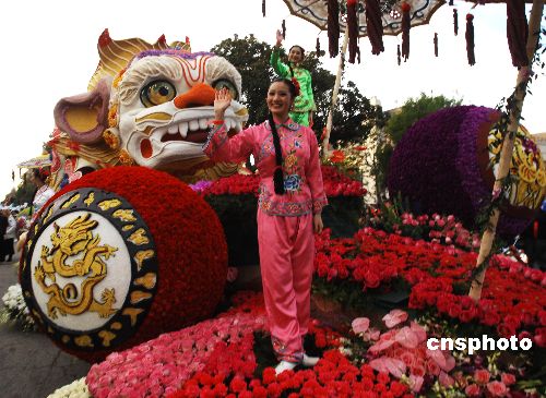 北京奥运花车亮相美国元旦玫瑰花车大游行(图)