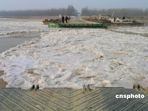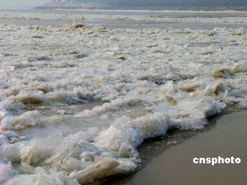 1月14日,受持续低温天气影响,山东黄河济南段出现淌凌。据介绍,随着气温逐渐下降,流凌密度将会进一步加大。中新社发 张庆民 摄