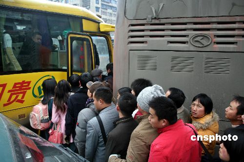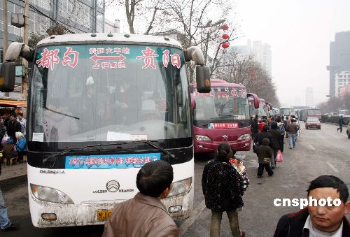 1月31日,在贵阳市遵义路,旅客们登上贵阳至都匀、凯里的长途客车。据贵阳交通部门信息,当天贵遵路、贵新路等多条高速公路已经开通运营。 中新社发 pengnian 摄