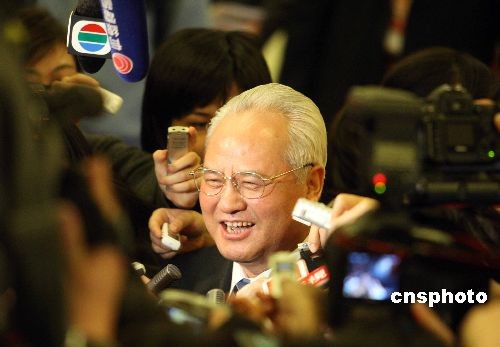 3月11日,十一届全国人大一次会议第四次全体会议在北京人民大会堂举行,听取国务委员兼国务院秘书长华建敏关于国务院机构改革方案的说明。出席会议的民政部部长李学举被记者围住,追访机构改革方案话题。中新社发 张宇 摄