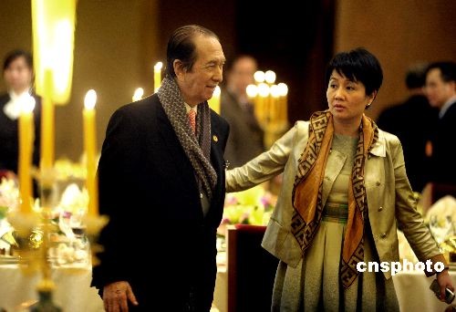 3月13日晚,全国政协常委何鸿燊夫妇在北京钓鱼台国宾馆出席港澳委员招待会。当晚,全国政协办公厅、中共中央统战部举行招待会,招待参加全国政协十一届一次会议的港澳地区全国政协委员。中新社发 廖攀 摄