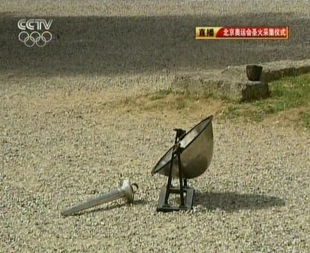 图:北京奥运会采火仪式凹面镜准备就绪