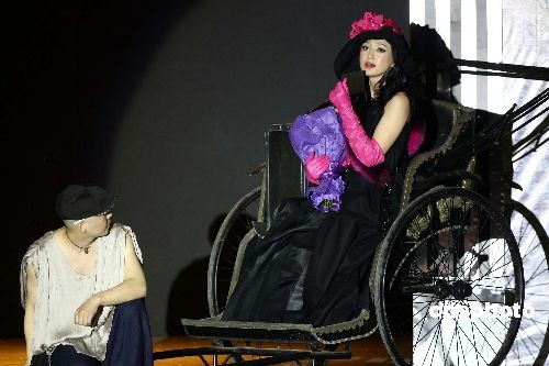 图为模特在发布会上乘黄包车登台表演。中新社发 盛佳鹏 摄