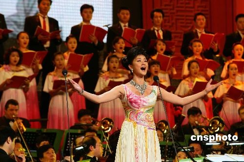 图为中国著名女歌唱家宋祖英在晚会上演唱《阳光的爱》。中新社发 富田 摄
