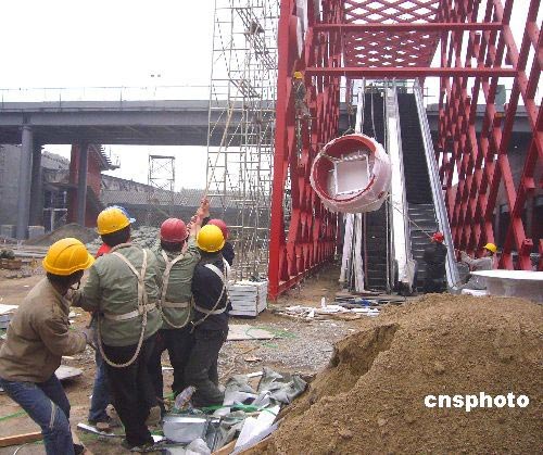 4月1日,北京奥林匹克中心区下沉花园,施工人员在加紧往桔红色框架上安装吉庆大鼓。据悉,这些大鼓的直径在1至两米左右, 届时几百个大鼓将组成一道富有中国特色的靓丽风景。据悉,建成后的奥林匹克公园下沉花园将展现七个中国特色院落。从紫禁城的红墙,到北京的四合院,从历经千年的鼓乐,到盛唐的马球运动,在这里都有体现。作者: 玉龙