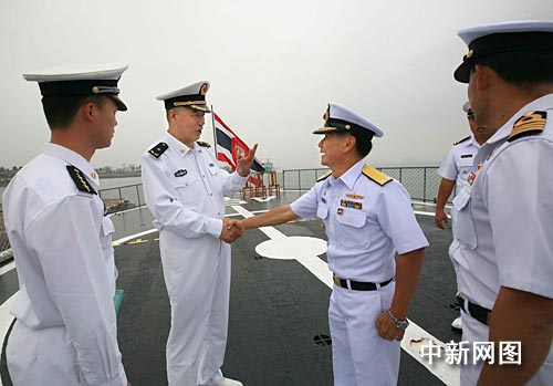 4月1日至4日,泰国海军舰艇编队在皇家海军学院参谋长巴桑.苏卡斯特少将率领下首次访问了南海舰队。几天来,两国海军官兵通过互相参观军舰、举行招待会和甲板答谢会、文化比赛等多项交流,增进了了解,加深了友谊。作者:韩海冰 江晓卫