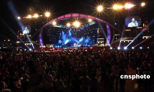 4月6日晚,由海峡两岸合作举办的“妈祖之光综艺晚会”在台南市盛大演出。活动由台南市府主办,福建省广电集团赞助。主办单位表示,晚会以妈祖文化、妈祖精神切入,以和平、安宁作主题,歌舞、戏剧和杂技等交相融合的方式接替演出,旨在呈现妈祖之宗教、文化、艺术的最高境地。中新社发 杜洋 摄