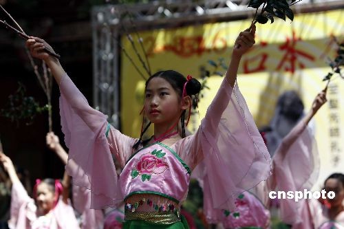 图为台南大学附属小学的学童为茶礼揭开序幕。中新社发 杜洋 摄