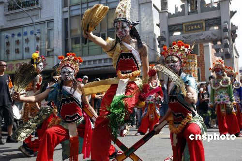 图:台南妈祖出游祭拜场面热闹