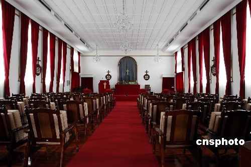 图为凯歌堂,过去曾是蒋介石及其夫人作礼拜的地方,蒋家后代均在此完成婚礼及受洗。中新社发 杜洋 摄