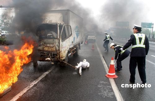 图:山东交警举行“迎奥运保畅通”演练(2)