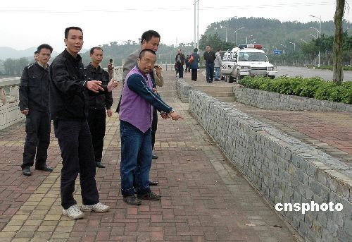 四月十日,广西钦州市警方宣布,造成恶劣社会影响的钦州市城区新夜色VIP酒吧爆炸案成功告破,涉案犯罪嫌疑人劳永荣被依法逮捕。警方初步查实,劳永荣为抢生意、夺客源而实施爆炸行为。三月十三日凌晨二时二十一分左右,位于钦州市区永福西大街中段的新夜色VIP酒吧发生爆炸,造成三人死亡、三十一人轻伤及轻微伤。图为劳永荣在指认现场。中新社发 蒋雪林 摄
