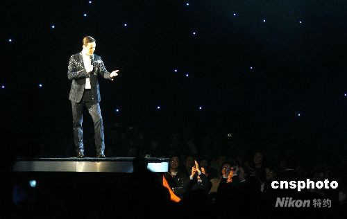 有俄罗斯第一男高音美誉的海豚音王子Vitas的演唱将晚会带入一个小高潮。中新社发 慎重 摄