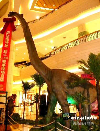 4月11日,为庆祝中国首座“全生活广场”扬州京华城开业一周年,“喜迎周年庆 重返侏罗纪”大型恐龙展在该城开幕。中新社发 崔佳明 摄