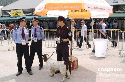 4月16日,为保证第103届广交会的安全,本届广交会参照民航标准实施进馆安检。中新社发 柯小军 摄