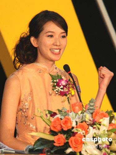 台湾美女林志玲担任主持人,现场为北京奥运加油。作者: 赵振清