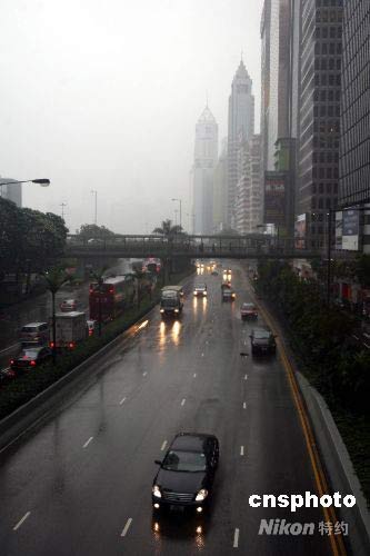香港市区狂风暴雨,车水马龙的市区白昼变黑夜。中新社发 洪少葵 摄