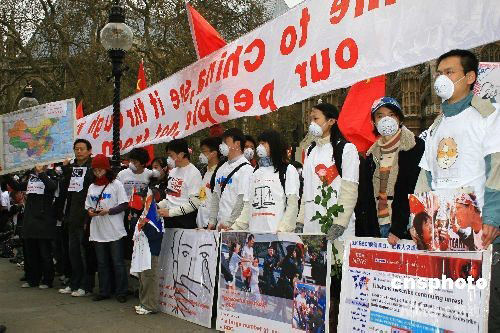 英国华人戴口罩静默集会抗议媒体不公正报道(图)