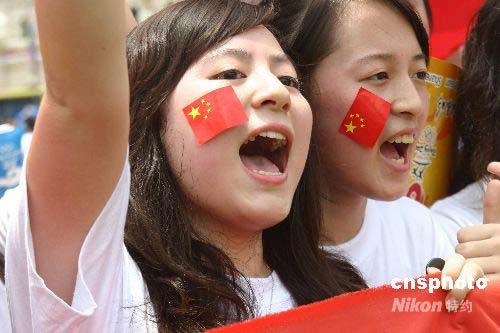 4月21日下午2时,北京奥运圣火在吉隆坡的点火起跑仪式在独立广场举行。北京奥运圣火在吉隆坡的传递以“从古老到现代”为主题,从独立广场出发后,途径市政厅、国家议会、国家博物馆、国家清真寺、独立体育场、吉隆坡电视塔,最终将于傍晚6时在国营石油公司双峰塔举行庆典仪式。整个传递路线约为16里,历时4个小时。图为中国留学生在吉隆坡为北京奥运圣火助威。作者: 沈晨