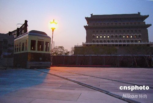 4月23日,消失了50年之久的“铛铛车”亮相北京前门大街。据悉,该车长12米,共有“前门一号”和“前门二号”两辆。老北京俗称的“铛铛车”无轨电车,因其不时响起的铃铛声而得名。中新社发 玉龙 摄