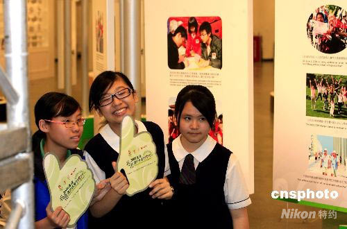图为香港学生观摩奥运图片展览。 中新社发 王丽南 摄