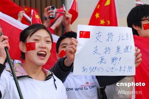 组图:北京奥运圣火在长野顺利完成接力(6)