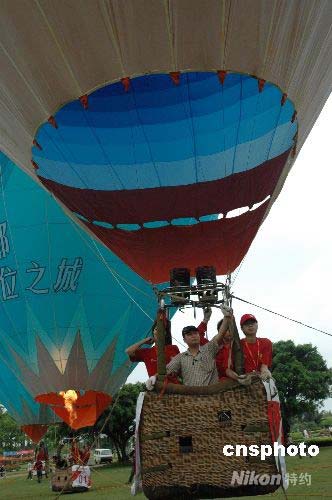图:海口市民争乘热气球体验升空感受(2)