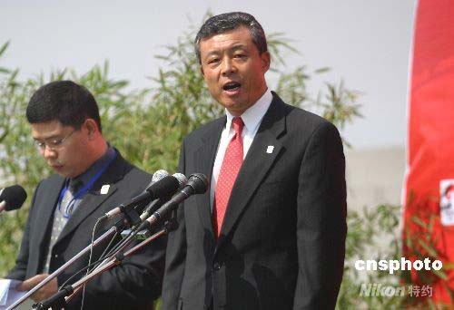中国驻朝鲜大使刘晓明(右)在仪式上致辞。 中新社发 沈晨 摄