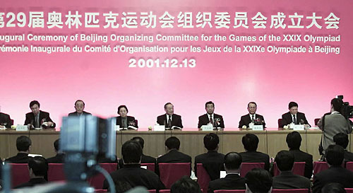 2001年12月13日,第29届奥运会组织委员会(北京奥组委)成立,标志着北京2008年奥运会的筹办工作正式启动。(资料照片)
