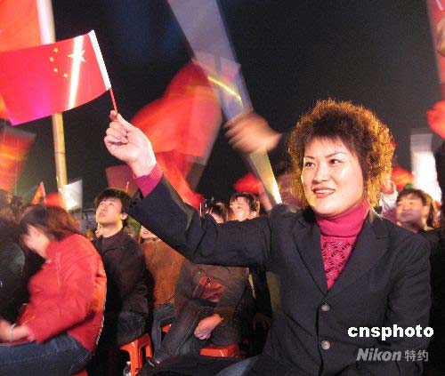 图:秦皇岛民众山海关前欢庆奥运倒计时一百天 (3)